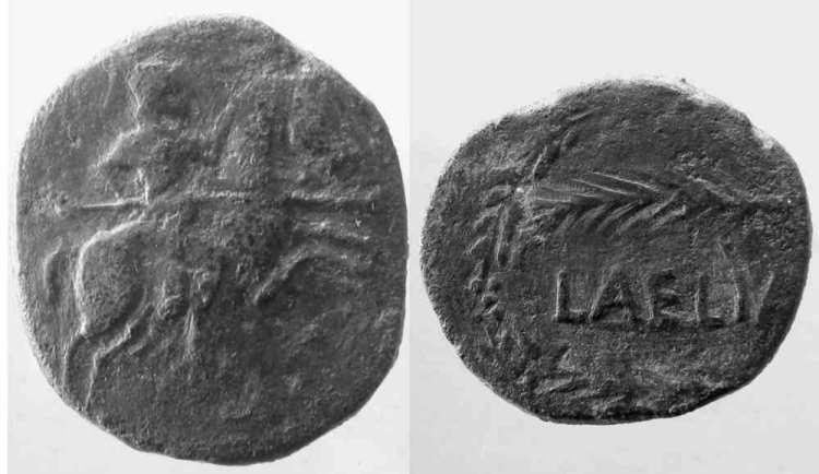 Laelia, Spain, AE 23-26 mm As, 10.83 gr. Iberian rider riding right, holding couched lance / LAELIA between two palm branches. Burgos (2008) 1649; Ripolles 432; CNH 5; Mionnet I, 144.
