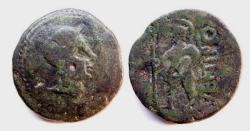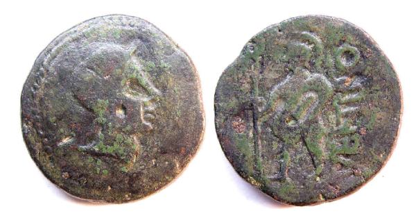 | SNG Cop 180 | Ventipo (Casariche /Sevilla ), AE As. Helmeted male head right within dotted border / VENTIPO, Warrior standing left, holding trident-tipped mace and shield, all within dotted border. SNG Cop 180; Burgos 2008, 2517. | Text | Image | |