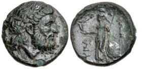 | BMC (Hypata) 1 | Hypata, Thessaly. AE19, Dichalkon, 5.80 gr. Laureate head of Zeus right, thunderbolt behind head / YΠATAIΩN, Athena standing left, holding Nike, spear and shield. BMC (Hypata) 1; Rogers 267. | Text | Image |