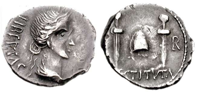 | RIC 24 Sear5 #2071 | Denarius of the Civil Wars period. LIBERTAS, Laureate head of Libertas right / P – R to left and right of pileus between two daggers, RESTITVTA below. RIC 24; Cohen 394; Martin 49. | Text | Image |
