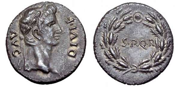 | RIC 116 | Augustus, Civil wars, AR denarius, 68-69 AD. DIVVS AVGVSTVS, radiate head of Augustus right / SENATVS PQ ROMANVS. Victory walking left, holding round shield inscribed VI / AV. RIC I (Civil wars) 116. | Text | Image |
