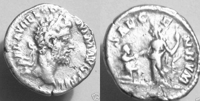 | RIC 655[aurelius] | Commodus, as co-Augustus, Denarius. 177-178 AD. L COMMODVS AVG, laureate, draped and cuirassed bust right / COS P P, Salus seated left, holding a branch, serpent at her feet. RSC 67. | Text | Image |
