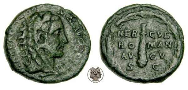 | Gnecchi II, 29 | Commodus, AE medallion, 69 g. Rome, 192 AD. [L A]ELIUS AVRELIVS COMMO[DVS] C AVG PIVS FELIX, head of Commodus right, wearing lionskin / [HERCVLI ROMANO AVG] PM TR P XVIII COS [VII PP], Hercules Farnese standing right, right hand behind back, resting on club set on rock. Cohen 208; Gnecchi 29; SNG Boston 45; Banti 108. | Text | Image |
