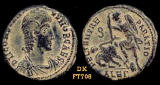 | Alexandria RIC VIII 74, Δ | Constantius Gallus, AE 25mm. Alexandria. DN CONSTANTI-VS NOB CAES, bare-headed, draped, cuirassed bust right / FEL TEMP RE-PARATIO, soldier spearing fallen horseman who is bare-headed and bearded, reaching backwards. Γ in left field. Mintmark: ALEΔ. RIC VIII Alexandria 74. | Text | ![]() |