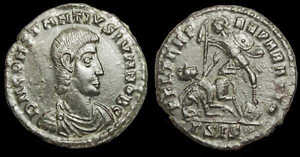 | Siscia RIC VIII 299 var | Constantius Gallus, AR siliqua. Siscia. AD 350-351. DN CONSTANTIVS IVN NOB C, bare-headed, draped and cuirassed bust right. / VICTORIA CAESARIS, Victory walking left, holding wreath and trophy. Mintmark SIS. RIC VIII Siscia 299 var (Victory's attributes); Tkalek Oct. 2011, lot 245. | Text | ![]() |
