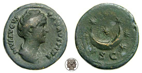 | RIC 1199 Sear 4658 | Diva Faustina I AE As. DIVA AVGVSTA FAVSTINA, draped bust right / S-C, crescent and seven stars. Cohen 275. | Text | Image |