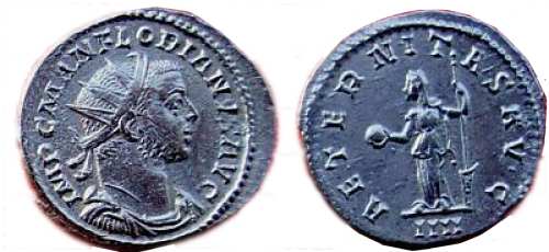 | RIC 7 | Florian AE Antoninianus. Lyons mint. IMP C M AN FLORIANVS P F AVG, radiate cuirassed bust right / PACATOR ORBIS, Sol running left with raised hand and holding whip. Mintmark III or none. | Text | ![]() |