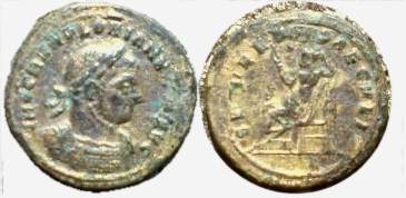 | Estiot 2475 | Florian, AE antoninianus. Rome mint. AD 276. IMP C FLORIANVS AVG, radiate, draped, cuirassed bust right, seen from the back / LAETITIA FVND, Laetitia standing left, holding wreath and anchor. Mintmark XXIB. Rome 34 var; Estiot 2475-2487; ric.mom.fr, 4220. | Text | ![]() |