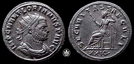 | RIC 105 | Florian AE Antoninianus. Siscia. IMP C M AN FLORIANVS P AVG, radiate, draped and cuirassed bust right / SECVRITAS SAECVLI, Securitas seated left, holding sceptre and resting elbow on back of chair. Mintmark XXIQ. | Text | ![]() |