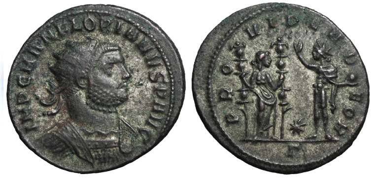 | La Venera 2049 RIC 112 var | Florian, AE Antoninianus, Serdica. IMP C M AN FLORIANVS AVG, radiate, draped, cuirassed bust right / PRO-VIDEN D-EOR, Providentia standing right, holding two standards, facing Sol standing left, raising right hand and holding globe. Star in lower centre field. Mintmark Γ. La Venera hoard 2049; RIC V-1 Serdica 112 var (mintmark/officina letter). | Text | ![]() |