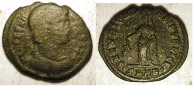 | Heraclea RIC 79,Δ | Helena AE Follis. FL HELENA AVGVSTA, diademed and mantled bust right / SECVRITAS REIPVBLICE, Securitas standing left, lowering branch with right hand, raising hem of robe with left hand. Mintmark SMHΔ. Sear 16613. | Text | ![]() |