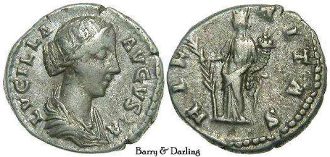 | RIC 771 Sear 5485 | Lucilla Denarius. LVCILLAE AVG ANTONINI AVG F, draped bust right / IVNONI LVCINAE. Juno standing left, holding child in swaddling clothes. RIC 771, RSC 38. | Text | Image |