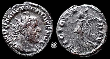 | RIC 17 | Marius AE Antoninianus. Mint II (Treveri?). IMP C M AVR MARIVS AVG, radiate, draped & cuirassed bust right / VICTORIA AVG, Victory standing left, holding wreath and palm. Schulzki 7b, Elmer 638, Cunetio 2509; Sear 11123-11124. | Text | ![]() |
