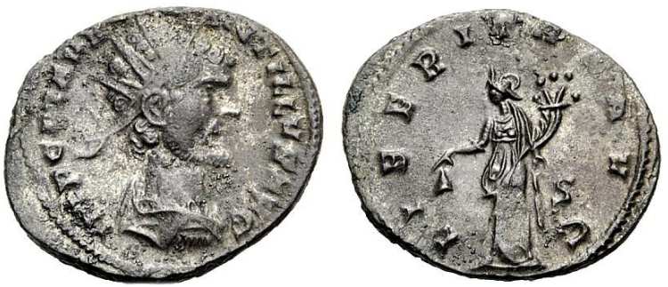 | RIC 65 var Off. ς | Quintillus, AE antoninianus, Siscia mint. IMP CM AVR CL QVINTILLVS AVG, radiate, draped bust right. / LIBERITAS AVG, Libertas standing left, holding pileus and cornucopiae. Officina letter ς in right field. RIC V-1 Siscia 65 var (officina); Lavilledieu hoard 204; Vienna 51954-51956; Coleby hoard 464; Alföldi VII.11. | Text | ![]() |