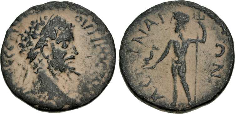 | Zephyrion Lindgren 956 | Septimius Severus AE 26mm of Zephyrion-Hadrianopolis, Cilicia. Laureate head right / AΔΡIANOΠOΛEITΩN ZEΦYΡIΩTΩN, Zeus enthroned left, holding wreath and sceptre. | Text | Image |