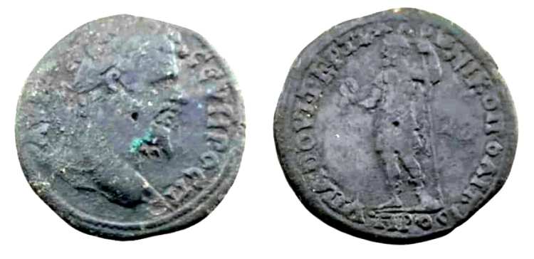 | Thyateira GRPC Lydia 274 | Septimius Severus, AE32 of Thyateira, Lydia. AD 193-211. Magistrate Asiaticus Hermogenes. 14.79 gr. AYT KAI CEΠ CEOYHΡOC, laureate head right / EΠI CTΡ ACIATIKOY ΘYATEIΡHNΩN, Tyche standing left, kalathos on head, holding rudder in right hand and cornucopiae in left. GRPC Lydia 274 otherwise unpublished. | Text | Image |