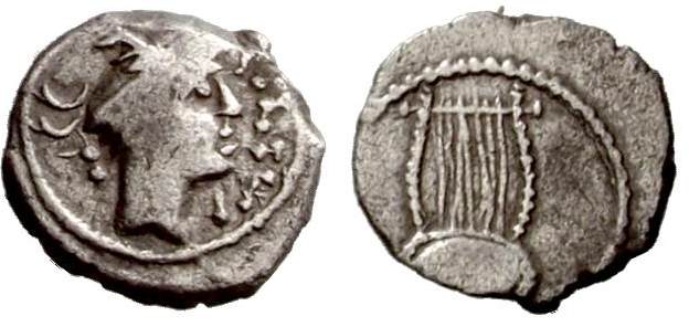| Papia 5 | L. Papius Celsus, AR Sestertius 45, 0.83 g. [CELSVS] Head of Mercury right, caduceus behind / Lyre. Babelon Papia 5; RSC 5; Syd. 967. Sear Imperators 85. Crawford 472/4b. | Text | Image | |