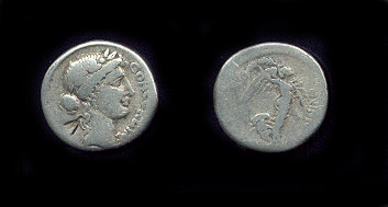 L Vinicia Denarius. 53 BC. CONCORDIA, laureate bust of Concordia right / L VINICI, Victory flying right, bearing palm branch to which are attached four wreaths.
