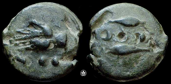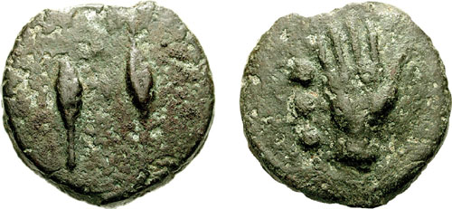 Rome. Circa 275-270 BC. Æ Aes Grave Quadrans. Two barley grains / Open hand. Crawford 14/4; Haeberlin pl. 40, 1.