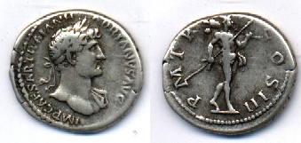 Hadrian Denarius. IMP CAESAR TRAIAN HADRIANVS AVG, laureate bust right, far shoulder draped / P M TR P COS III, Mars advancing right with spear & trophy. RSC 1073.