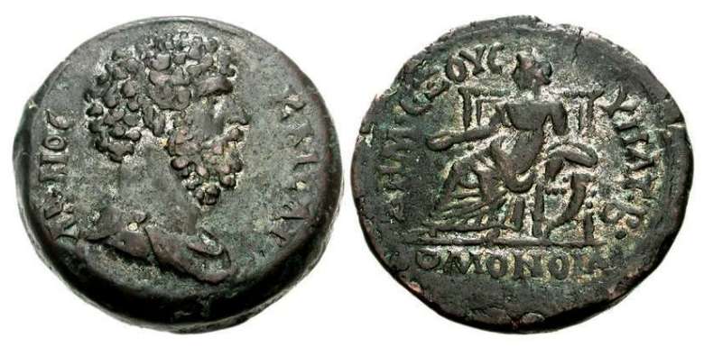 Aelius Caesar, 2nd Consulship, AE Drachm of Alexandria. L AILIOC KAICAP, draped bust right / DHMEXOYC YPAT B, OMONOIA below, Homonoia seated left, holding patera and cornucopiae. SNG Cop 419.