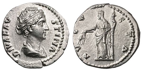 Diva Faustina Sr Denarius. DIVA FAVSTINA, draped bust right, hair coiled on top of head / AVGVSTA, Ceres standing left, holding corn-ears and long sceptre. RSC 78.