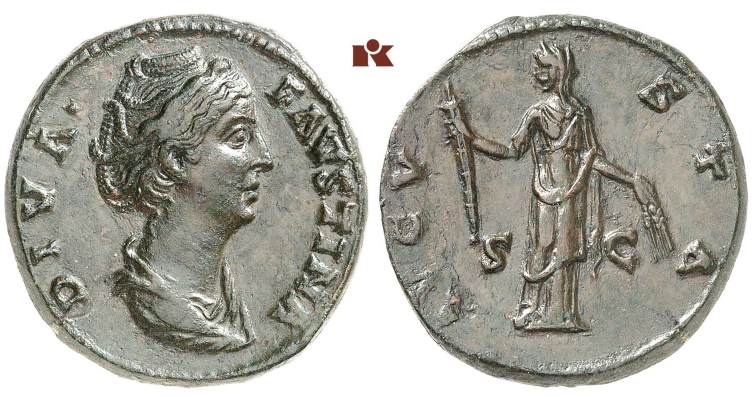 Faustina Sr AE As. DIVA FAVSTINA, draped bust right / AVGVSTA S-C, Ceres standing left holding torch & corn-ears. Cohen 89.