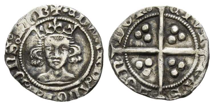 | Seaby 1546 London | Edward III, 1344-1351 (reigned 1327-1377), AR Penny. Third (Florin coinage). + EDW R ANGL DNS HYB, crowned bust facing / CIVI-TAS-LON-DON, long cross with three dots in each angle. North 1116. | Text | Image |
