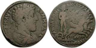| Paris 99 | Commodus, AE32 of Tmolus-Aureliopolis, Lydia. 177-192. 23.67 gr. Magistrate Apollonides. AYT K M AYΡ KOMMOΔOC, laureate, draped, cuirassed bust right / AΠOΛΛΩNIΔHC CTΡ ANEΘ AYΡH-ΛIOΠOΛEI, Apollo, naked, holding bow and arrow, standing in biga of griffins galloping right. BMC 2-4; Mionnet IV, 75; Paris 99; SNG Munich 693; Vienna 19371; Vienna Forgery Collection 359; Leake 7522; Thomas Thomas collection, 2383; GRPC Lydia 17. All deemed to be cast forgeries by RPC. | Text | Image |