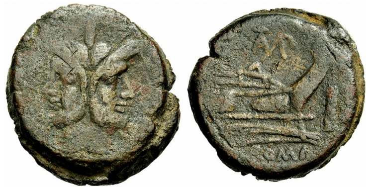 Cn Baebius Tamphilus, 194-190 BC, AE As. Head of Janus right / Prow right, TAMP ligate above, three dots to right, ROMA below. C133/4; Syd. 337; BMCRR 561.