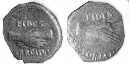Roman Civil Wars AR Denarius. 68-69 AD. FIDES - EXERCITVVM above and below clasped right hands / FIDES PRAETORIANORVM above and below clasped right hands. BMC 121, Cohen 363.