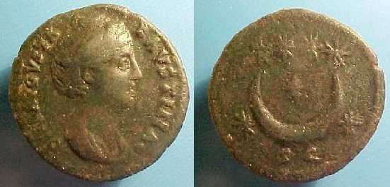 Diva Faustina Senior AE As. DIVA AVGVSTA FAVSTINA, draped bust right / S-C, crescent moon and seven stars. Cohen 275.