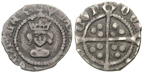 | Seaby 2245 | Henry VII. 1485-1509. AR Halfpenny (0.42 gm). Class IIIc, struck 1505-1509. London mint. Crowned bust facing; mintmark: pheon / CIVITAS LONDON, long cross. North 1735. | Text |  |