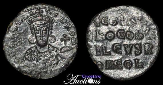| SB 1760 | Romanus I. AE Follis. 913-959 AD. Constantinople. RWMAN bASILEVS RWM, crowned, bearded, facing bust of Romanus, wearing chlamys, holding labarum and cross on globe / RWMA - N EN QEW bA - SILEVS RW-MAIWN, legend in four lines. SB 1760, DOC 25. | Text | Image |