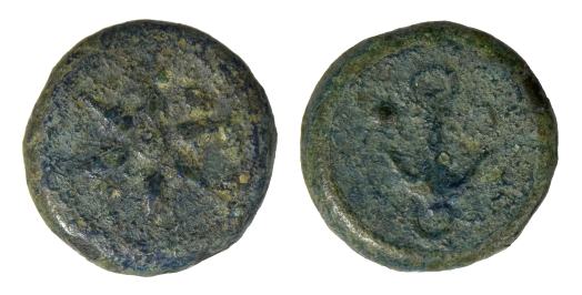| HN Italy 67 | Uncertain mint in Etruria. (ca 3rd cent. B.C.) AE Uncia. 9.46g. Wheel or star / Anchor; crescent to right crescent. HN Italy 67. | Text |  |