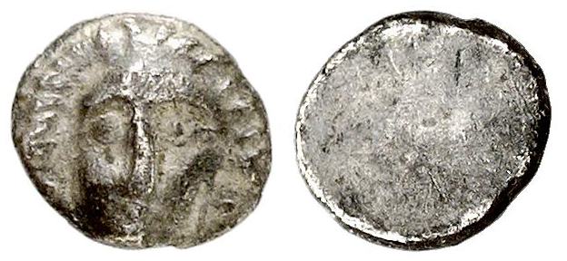 | SNG ANS 34 | Uncertain mint in Etruria, AR obol, 0.48 gr. 2nd-1st Century BC. Radiate head of Helios facing / Reverse smooth. SNG ANS 34. SNG München 25. Slg. Klein 5 (this coin). | Text |  |