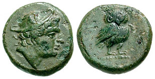 | SNG ANS 59 | Uncertain mint in Etruria. The Chiana Valley. Circa Late 3rd Century BC. AE 15mm. Head of Hermes right in winged petasos / Owl standing right. BMC Italy pg. 13, 5. | Text |  |