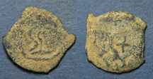 | Hendin 1191 | Herod I AE Lepton. 40 BC-4 AD. BACIΛEOC HΡΩΔOY, anchor / war galley in circle of dots. Hendin 502; Hendin (Guide) 1191; Meshorer 65; AJC II, 238, 22. | Text | Image |