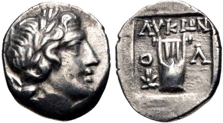 | Troxell 41 | Olympus, Lycia, league issue. AR Drachm 13 mm, 2.64 g. 167-88 BC. Laureate head of Apollo right. / ΛYKIΩN above, O-Λ to left and right of lyre, crown of Isis in lower left field. Troxell 41; SNG Cop 111; Mionnet VII 69. | Text |  |
