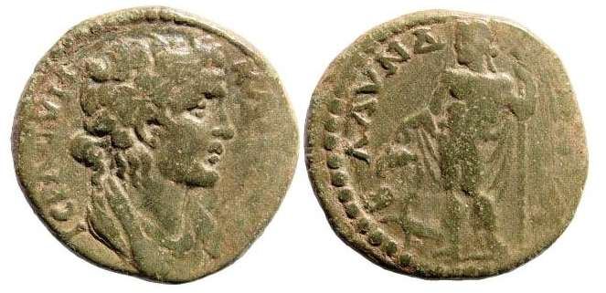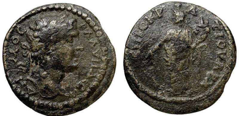 | RPC 1348 | Titus, AE of Blaundos, Lydia. Magistrat Ti. Klaudios Phoinix. 5.03 gr. 79-81 AD. TITOC KAICAΡ, laureate head right / KΛAYΔIOC ΦOINIΞ BΛAYNΔEΩN MAKEΔONΩN, Demeter standing left, veiled, holding corn-ears, poppy and torch. SNG Cop 90; BMC 72; Paris L4120; Waddington 4918 corr. ("Zeus") = Paris 184; RPC 1348; GRPC Lydia 104. | Text | Image |