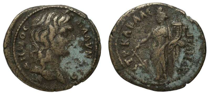 | Paris 181 RPC 1346 var | Vespasian, AE23 of Blaundos, Lydia. 69-79. Magistrate Claudius Foinix. OYECΠACIANOC KAICAΡ CEBACTOC, laureate head right / TI KΛAYΔIOC ΦOINIΞ, EΠI ITAΛIKOY BΛAOYNΔEΩN MAKEΔONΩN, around (anticlockwise) and in fields, Apollo standing facing, head right, resting on a lyre on a column, and holding plectrum. BMC 69; Paris 181-182; Waddington 4917; Weber 6797; SNG von Aulock 2926; Mionnet Supp VII, 74 corr. (rev. legend); SNG Cop 87; RPC II 1346; GRPC Lydia 101. | Text | Image |
