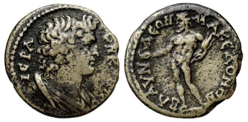 | Paris 193 | Septimius Severus AE medallion of Blaundos, Lydia. 193-211. Magistrate Okratios Archonos. 26.06 gr. AY KAI Λ CEΠ CEOYHΡOC ΠEΡ, laureate, cuirassed bust right / BΛAYNΔEΩN (in two lines to left) EΠI OKΡATIOY AΡXONO, Herakles, naked, standing right, holding lionskin, brandishing club, left knee on the back of the Nemean lion, about to strike the animal. Paris 193; GRPC Lydia 117. | Text | Image |