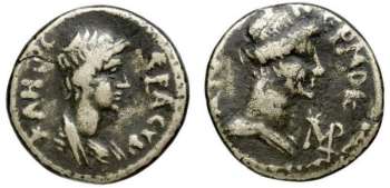 | There are at least 29 different varieties of the Roma/Senate type issue with different obverse legends and different monograms. Please see my Reading Monograms page on how to read monograms according to Price. |