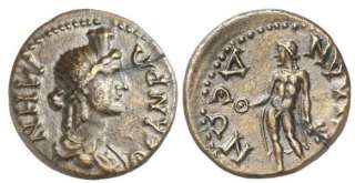 | BMC 5 | Silandos, Lydia, 21mm, 5.27g. ΘEA ΡΩMH, helmeted and draped bust of Roma right / CIΛANΔEΩN, cult statue of Kore between growing stalks of poppy and grain. BMC 5; Imhoof KM 1; Winterthur 3946; SNG von Aulock 3169; SNG Cop 547; Whittall II 697; Manisa museum 14576; GRPC Lydia 22. | Text | Image |