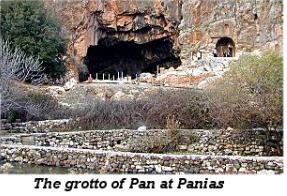 | Meshorer 12a | Septimius Severus AE24 of Caesarea Panias, Palestine. AD 193-211. Dated local year 199 (AD 196-197). 8.88 g. AYT Λ CEΠ CEYHΡON, laureate head right. / KAI CEB IEΡ KAI ACY T ΠANEIω, Pan, naked, walking left, playing the flute, tree trunk hung with a syrinx to right and pedum at its base. Date Ρς-Θ across fields. Meshorer 12a; Rosenberger 19; Sofaer 10. | Text | Image |