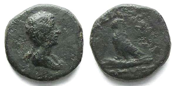 | Mionnet 134 | Kotys II or III of Thrace, 57-48 BC. AE12, 1.37 gr. Diademed head right / KOTYOS, Eagle standing left on thunderbolt, wings closed. Mionnet I, 134. | Text | Image |