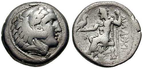 | tetradrachm | Thracian Kingdom, Uncertain King. Lilarkii(?) AR Tetradrachm. 2nd-3rd Century BC. Head of Herakles right, wearing lionskin headdress / ΛIΛAΡKII, Zeus seated left, holding eagle and sceptre; Artemis with two torches to left. Apparently unpublished. (This name cannot be found amongst numerous lists of kings and dynasts of the region). | Text | Image |