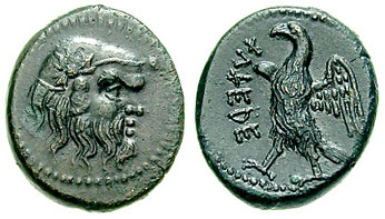 | SNG Cop 75 | Tuder, Umbria. ca 280-240 BC. AE 22mm. Bearded head of Selinos right, in wreath of ivy / tVtEDE, eagle standing left. SNG ANS 105-107, SNG Cop 75, SG 531v. | Text | Image |
