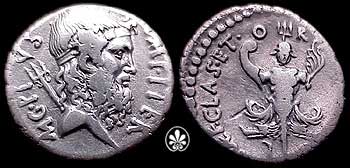 | RSC 1b | Sextus Pompey denarius. Head of Neptune / naval trophy. Cohen 1, Syd 1347. | Text | Image | |