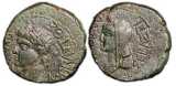 | 6613 | Dionysos’ head with ivy wreath, right. Rev. : ΘΕΣΑΛΟΝΙΚHΣ. Goat standing right and monogram. Common. | |||